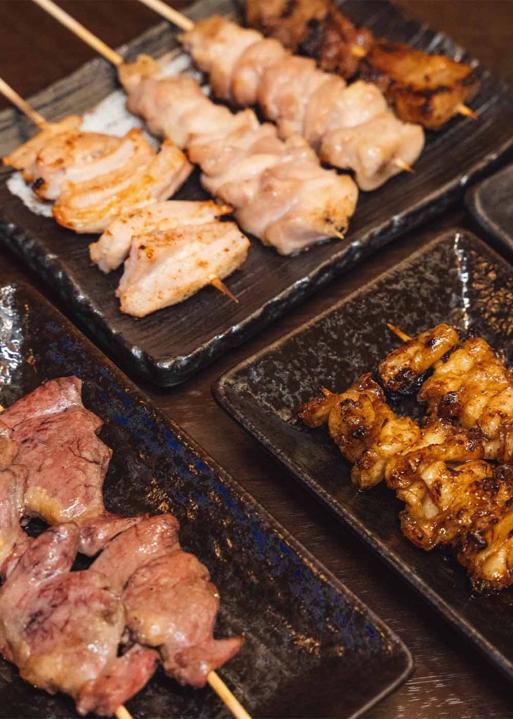 “炭火焼き鳥 彩鳥”は豊富なメニューを揃えていますが、特に串焼きは“プロ”が丹精込めて、一本一本焼き上げています。焼き加減や塩加減の好みなど、焼く前に仰っていただければ、お好みに合わせて対応が可能です。
